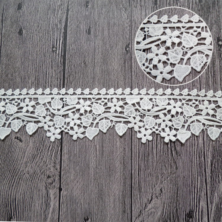 千丝丽水溶花边是采用瑞士利绣电脑刺绣机制造合成的。